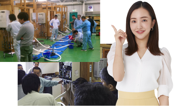 外注(下請け)業者ではなく、独自の教育・指導の元で管理された、当社専属のスタッフですので、安心してご注文ください。施工スタッフには、メーカー協賛の元、定期的な研修を行い、常に新しい給湯器の知識や特性などの理解を深め、サービスの向上に活かしております。