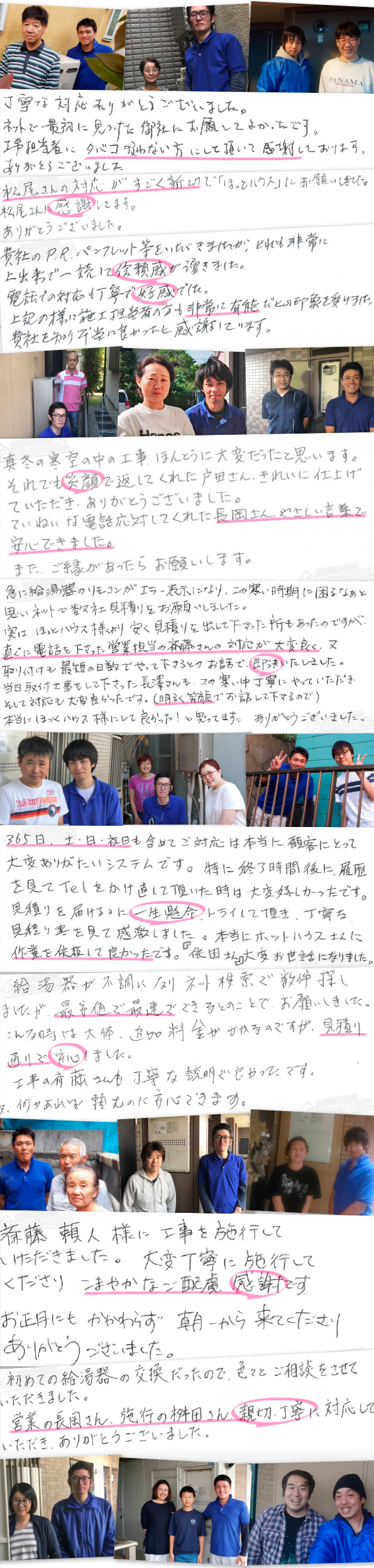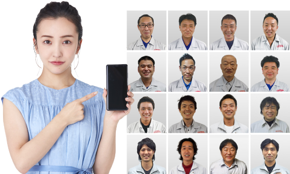 「ほっとハウス」の施工スタッフは、全員がその名前と顔写真をHPで公開しております。また、ご注文時には、伺うスタッフを事前にお伝えしますので、当日にどんな人が来るかわからないという不安も解消できます。