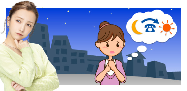 当社では夜間の電話受付は行っておりませんが、インターネットは24時間受け付けしております。夜間のお問い合わせに対しては、翌日に担当者が確認次第ご連絡させていただきます。