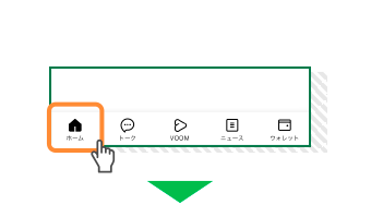 ①LINEを起動して画面下部にあるメニューの中の「ホーム」をタップ