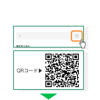 ②画面の中央、上あたりの検索フォーム右端の「QRコード」ボタンをタップし、下のQRコードをスマートフォンで読み取る